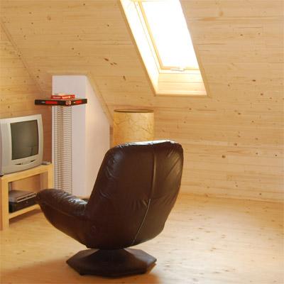 Op de eerste etage bevind zich een ontspanningsruimte, een ideale plek om kinderen te laten spelen, of lekker een DVD te kijken.