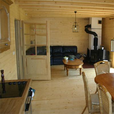 Een compleet met hout afgetimmerde vakantievilla geeft een warme sfeer.
